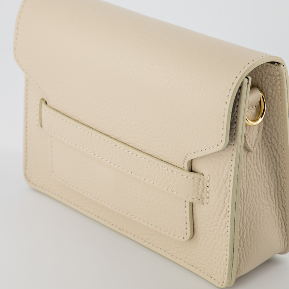 Leren crossbody met flap en magneetsluiting met verstelbaar lang hengsel.
