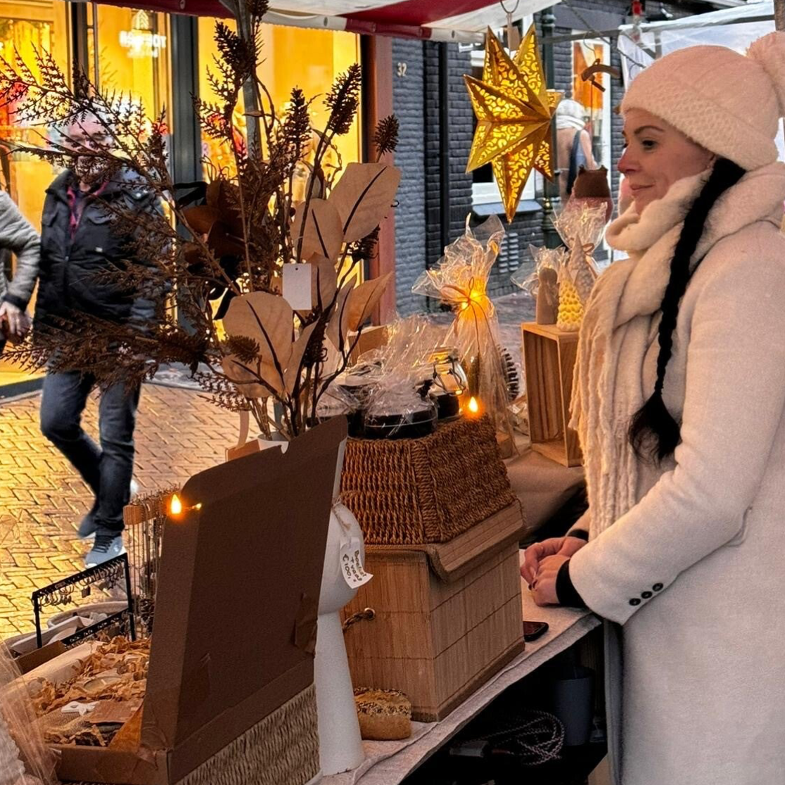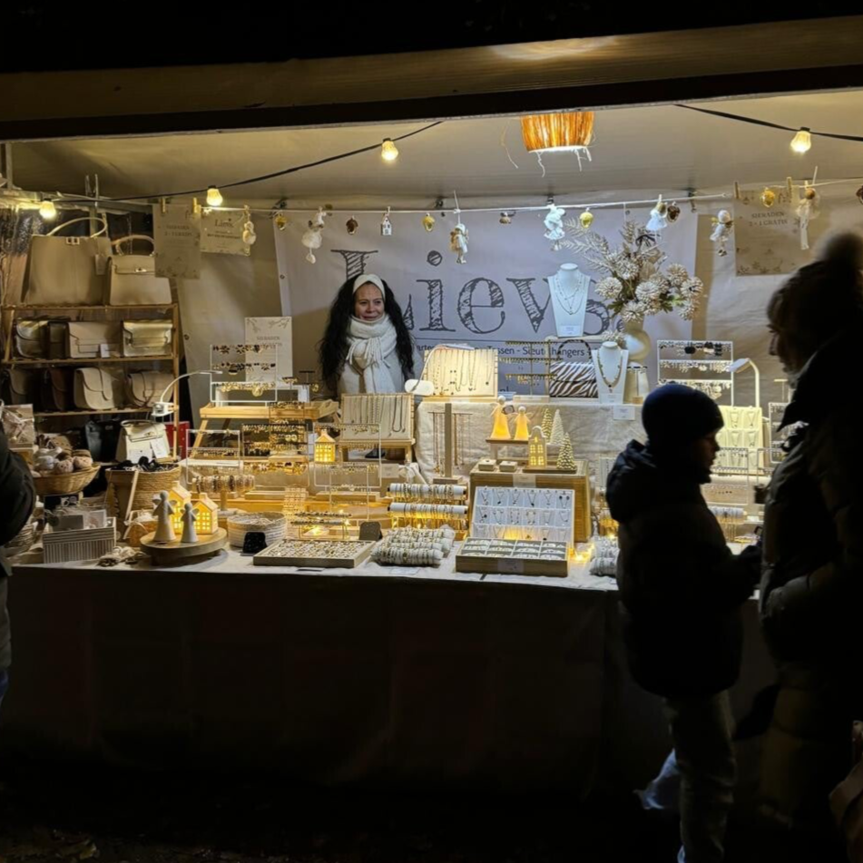 Een markt vol leuke kraampjes, waaronder Lievs met prachtige betaalbare sieraden van stainless steel, tassen en leuke kerst dingetjes. Denk aan engeltjes, kerststerren met lampjes, leuke huisjes met verlichting...