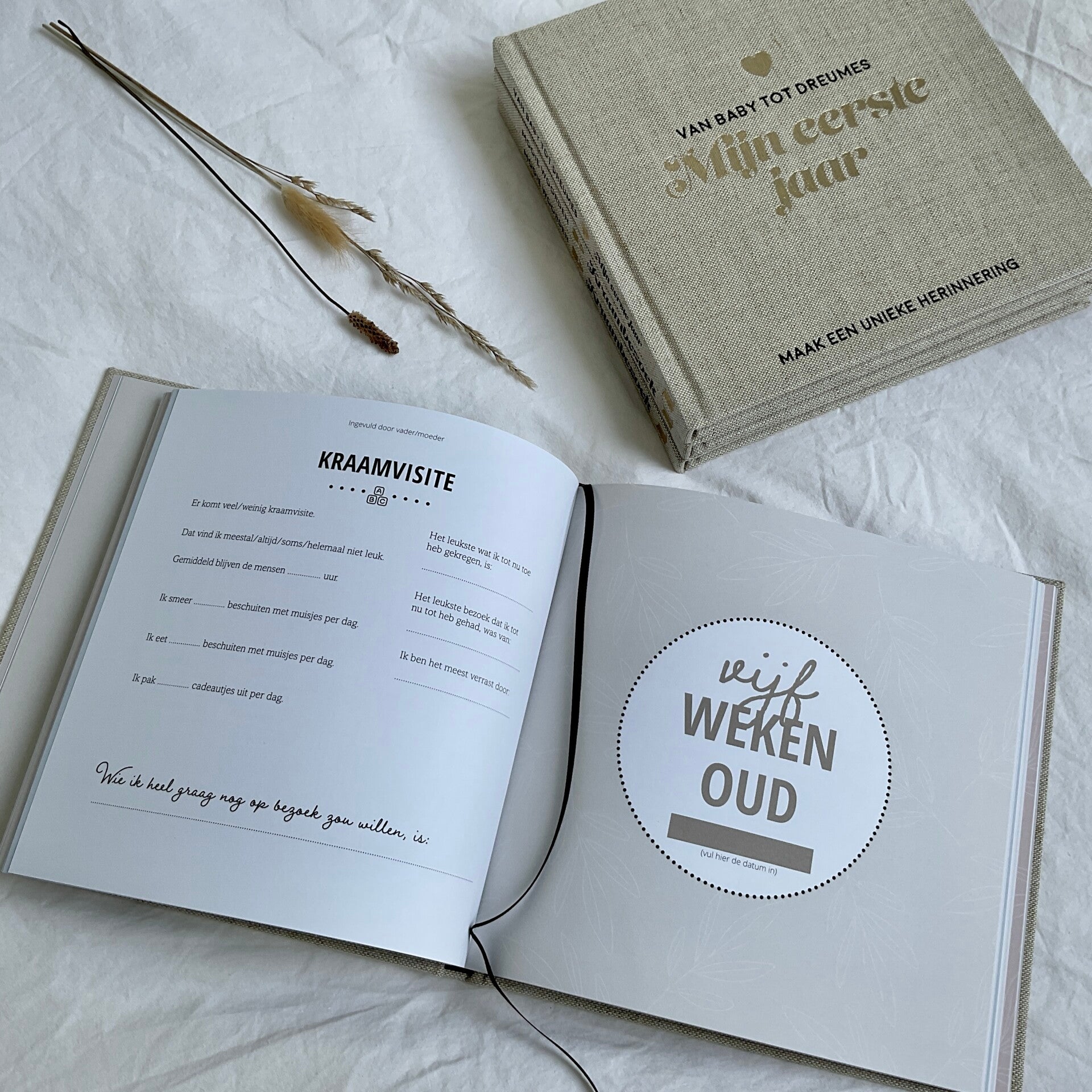 Een hip, eigentijds invulboek met stevig linnen kaft en gouden foliedruk! Schrijf alle dingen omtrent het eerste levensjaar van jouw baby die je wilt onthouden in dit mijn eerste jaar babyboek. Zo creëer je een geweldige herinnering voor later!