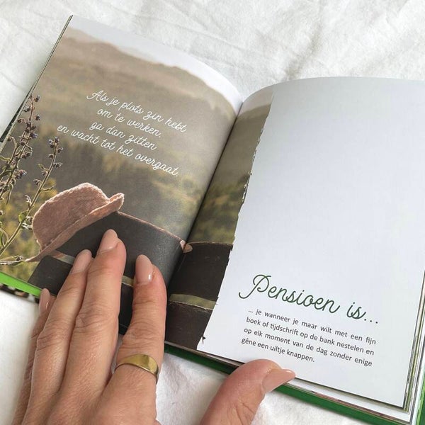 Ben je op zoek naar een originele manier om iemand te te feliciteren met zijn of haar pensioen? Dit prachtige cadeauboekje zegt meer dan 1000 woorden! Luxe uitgave met gouden foliedruk op het omslag.
